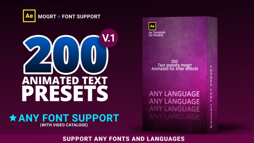 200 Text Presets can be used to add up to date and dynamically animated text animations on to your videos with a few simple clicks of a button. They’re so easy to use and they have been broken down into a range of categories. Simply add them on to your corporate presentations, business slideshows, TV shows, commercials, promotions, events, Facebook and YouTube videos. No plugins required. Available in HD.