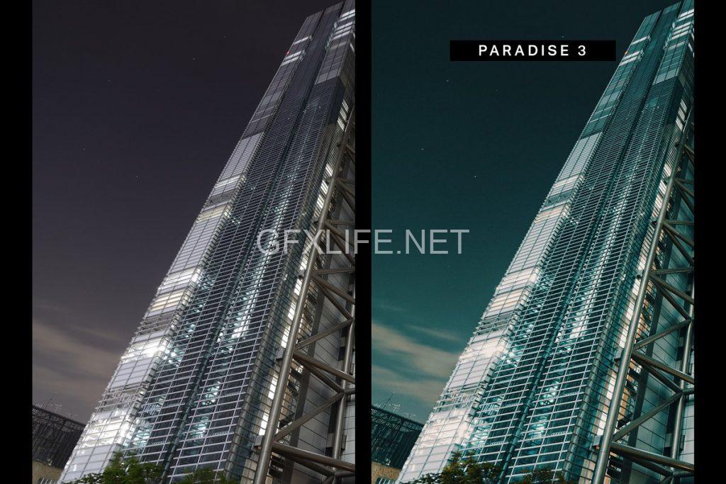 - 5 Paradise Presets – Vibrant colors. Reds are shifted towards orange