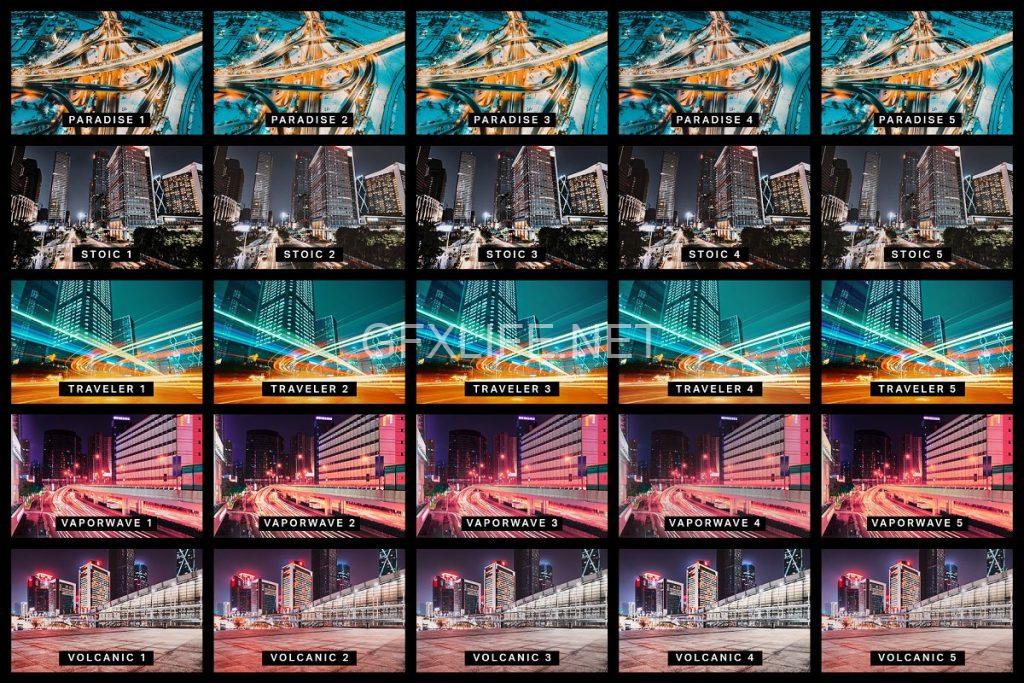 - 5 Vaporwave Presets – Colors are shifted towards pink and purple
