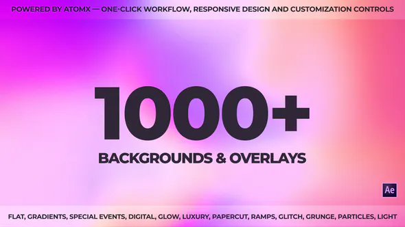 - 1000+ unique backgrounds and overlays for Adobe After Effects
