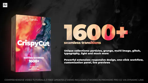CrispyCut is a collection of all the transitions that we have ever created. It is perfect for creating any kind of slideshows, openers, social media stories or title sequences for all sorts of audience – Youtube, Facebook, Instagram, TV, just anything. Over 1600 transitions will bring your video production to another level. It is so easy to use that any user with any kind of experience can do it – from those who’s just started a Youtube video blog to video editing professionals who value their time.