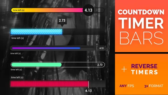 This pack of 5 macros for DaVinci Resolve is a toolkit to create modern countdown timer or reverse timer. Choose from 5 different bar designs, customize colors, titles, and set the duration of the countdown.