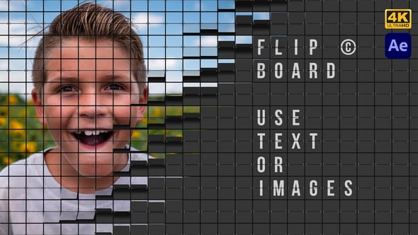 Flip Board © by Fizzrock Studio is an Adobe After Effects project that creates a 4K full-screen digital split-flap display, capable of displaying text or images.