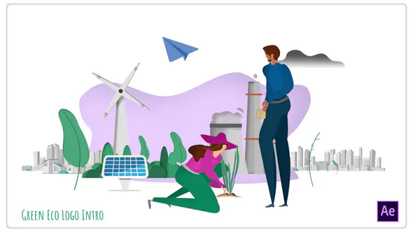 A unique “go green” concept After Effects animation project to promote your eco-friendly and green energy services or products. The flat design animation project, features photovoltaic solar panel energy cells, renewable wind turbine power & windmills, sustainable solutions to protect the Earth’s planet from climate change, greenhouse effect, pollution & CO2 emissions. A pair of young people (volunteers) are planting a tree in an urban environment, as a symbolic gesture / activity of reforestation and a green healthy and clean living filestyle!