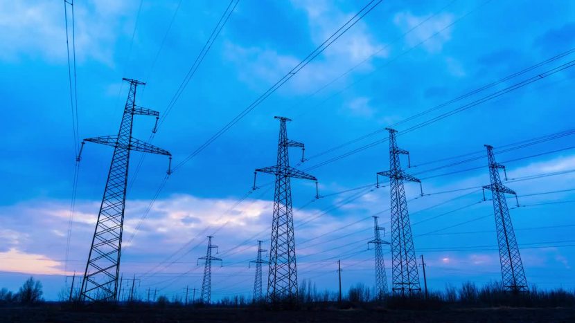 This stock video shows an incredible time-lapse shot of high voltage power lines at dusk.