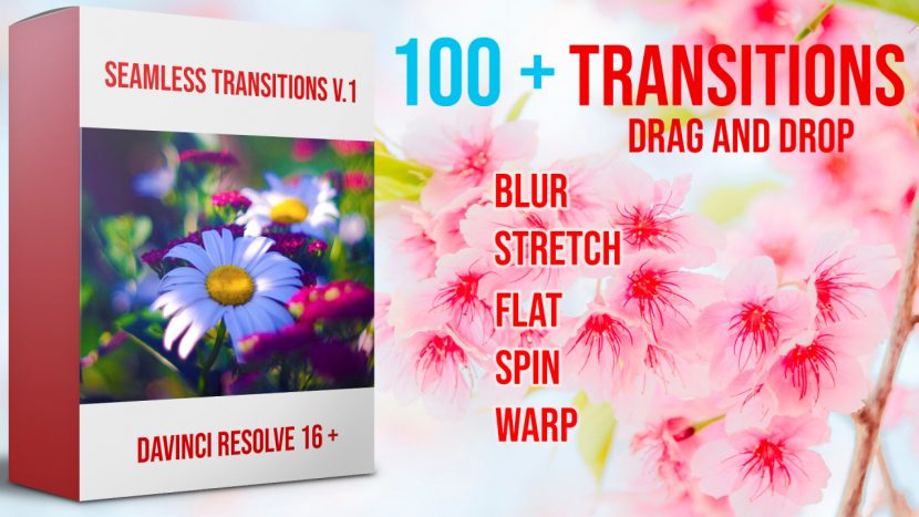 Drag and drop seamless transitions for Davinci Resolve 16 and above. This pack includes transitions like Flat, Blur, Stretch, Spin, Warp. Over 100 transitions for any video project. Make your video interesting and more dynamic by using these trendy and necessary transitions. Our product will help you create more professional video and save your time.
