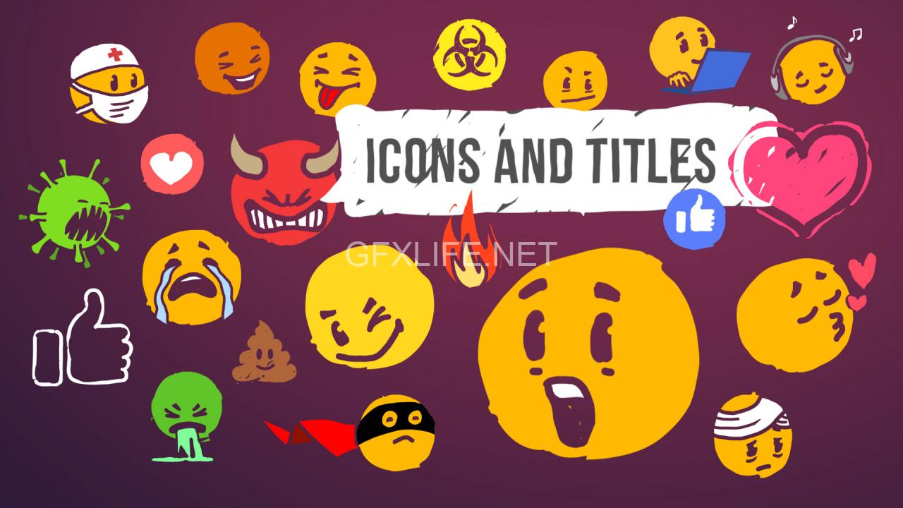Social Media Reactions Hand Drawn Pack is a fun-filled and fashionably animated Premiere Pro template that contains a unique collection of hand-drawn elements: 50 emojis, speech bubbles with editable texts, and additional elements. Emojis are presented in different styles (solid fill, textured, and outline). They’re so easy to use and they can be quickly added to your presentations, slideshows, TV shows, commercials, promotions, events, Facebook, Instagram, and YouTube videos.