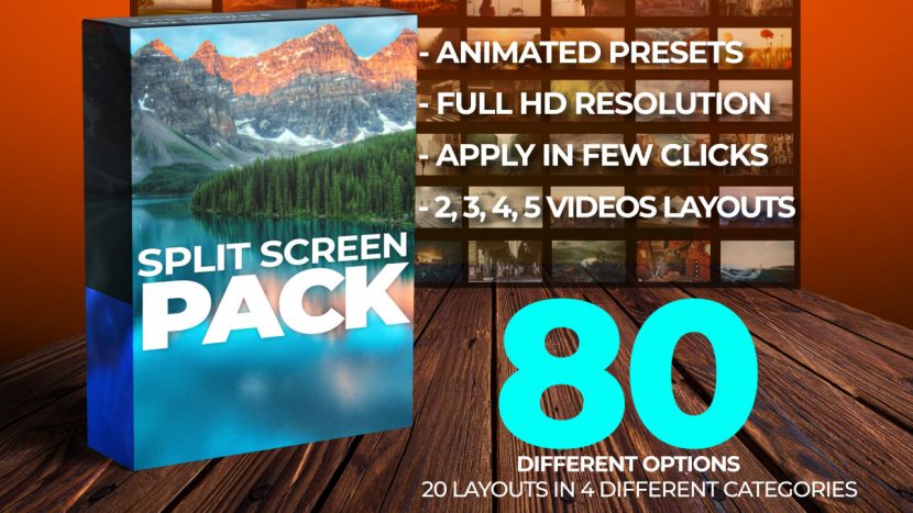 Split Screen Pack – FHD is an awesome package of 20 animated screen layouts for Adobe After Effects. It contains 4 versions that allow you to display multiple photos and videos on one screen. You can choose between animated / non-animated layouts, layouts with a frame/layouts without a frame. There are grid layouts for 2, 3, 4 and 5 videos to be displayed on screen. All layouts are also available with animated offset transitions at the beginning. Just drag and drop the preset on your footage.