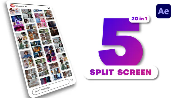 Vertical Multiscreen – 5 Split Screen – Instagram, TikTok, YouTube